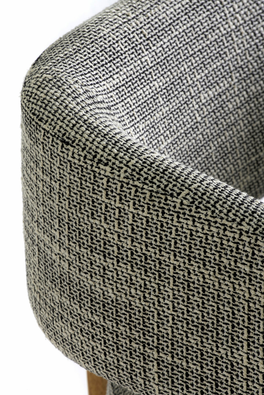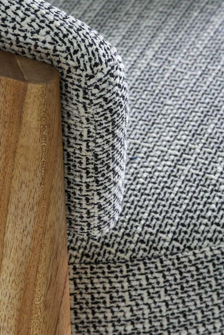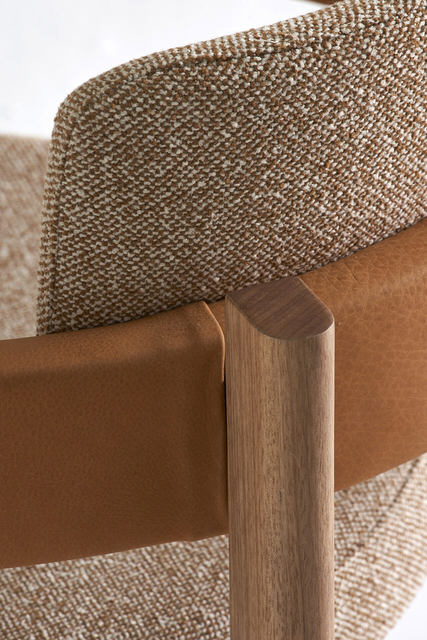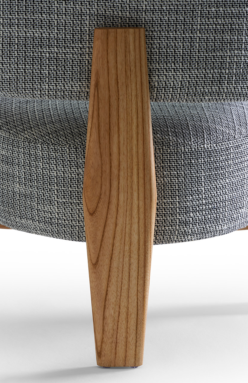 O assento em formato circular como uma pastilha dá um toque contemporâneo e permeia a escolha da forma circular como continuidade, resultando em um modelo leve, porém marcante. O braço em arco se estende até o encosto, unindo-se à estrutura de madeira de modo suave e evidenciando o arco como elemento de destaque do design. Aliado à estrutura de madeira maciça, o estofado no assento e braço trazem conforto e ergonomia à peça, além de diversas possibilidades de acabamentos e combinações. Sofisticada, a cadeira Arco incorpora a simplicidade da geometria com a presença estética contemporânea e atemporal, resultando em um modelo leve, porém marcante.