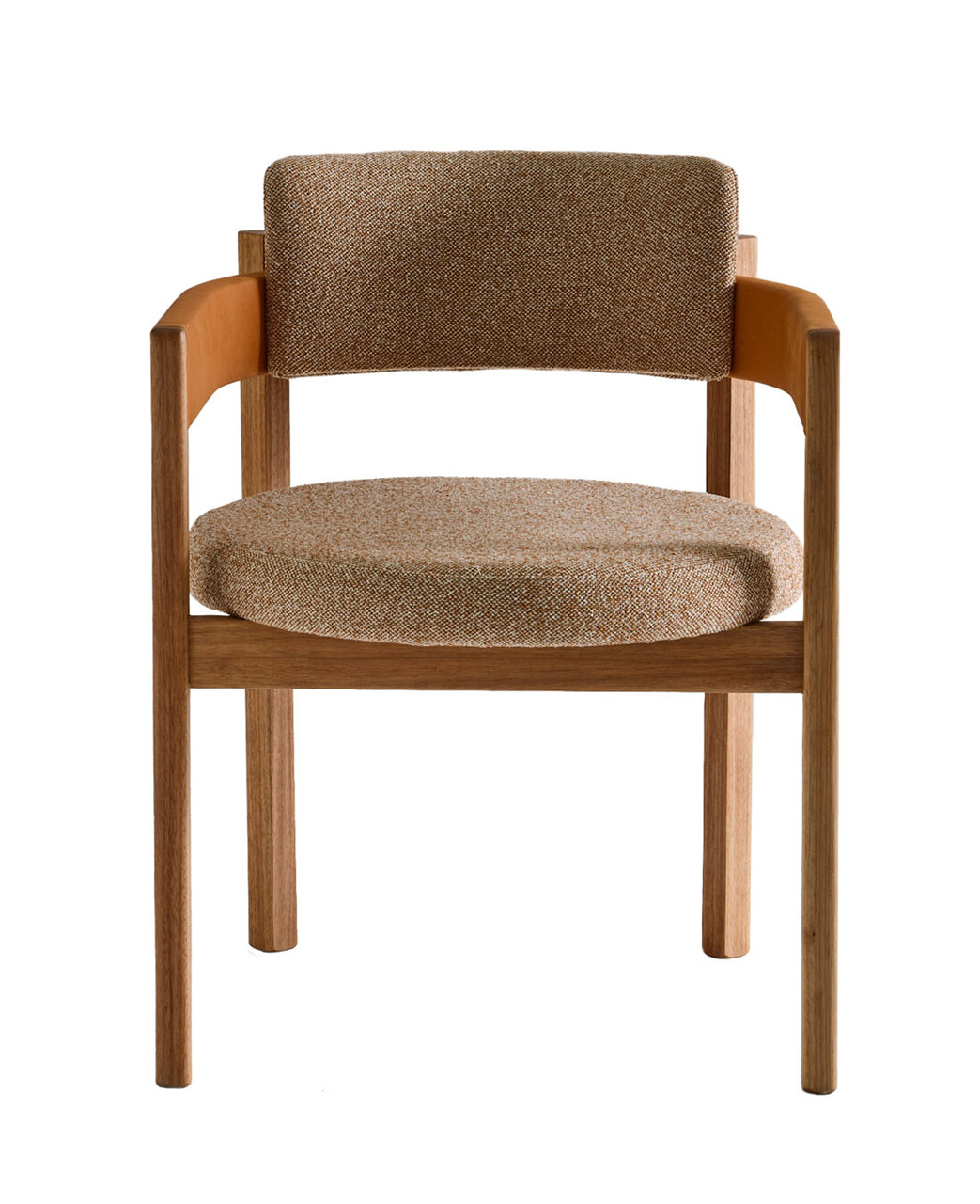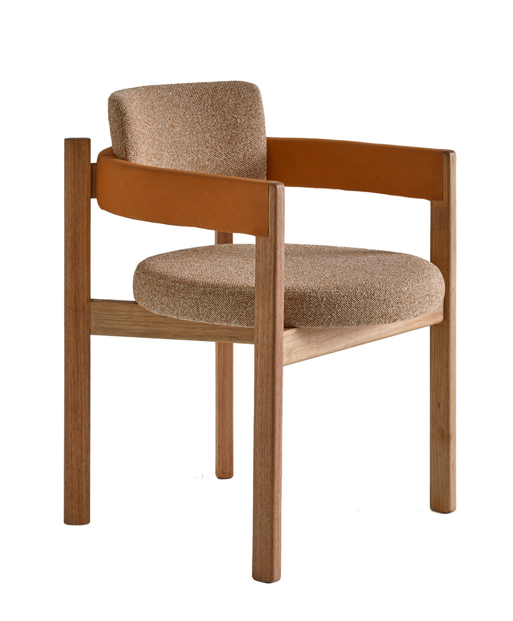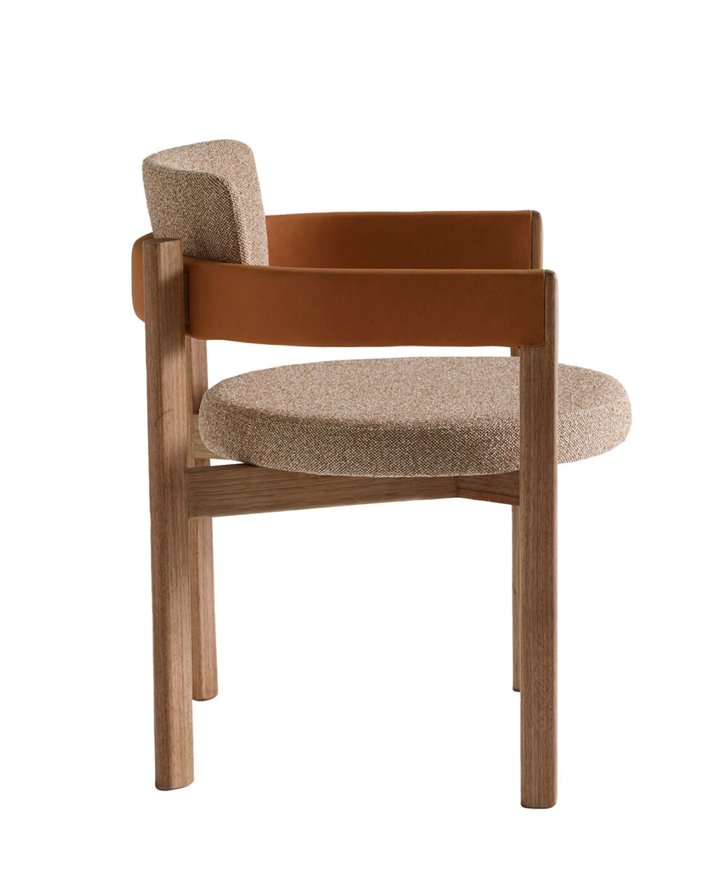 O assento em formato circular como uma pastilha dá um toque contemporâneo e permeia a escolha da forma circular como continuidade, resultando em um modelo leve, porém marcante. O braço em arco se estende até o encosto, unindo-se à estrutura de madeira de modo suave e evidenciando o arco como elemento de destaque do design. Aliado à estrutura de madeira maciça, o estofado no assento e braço trazem conforto e ergonomia à peça, além de diversas possibilidades de acabamentos e combinações. Sofisticada, a cadeira Arco incorpora a simplicidade da geometria com a presença estética contemporânea e atemporal, resultando em um modelo leve, porém marcante.