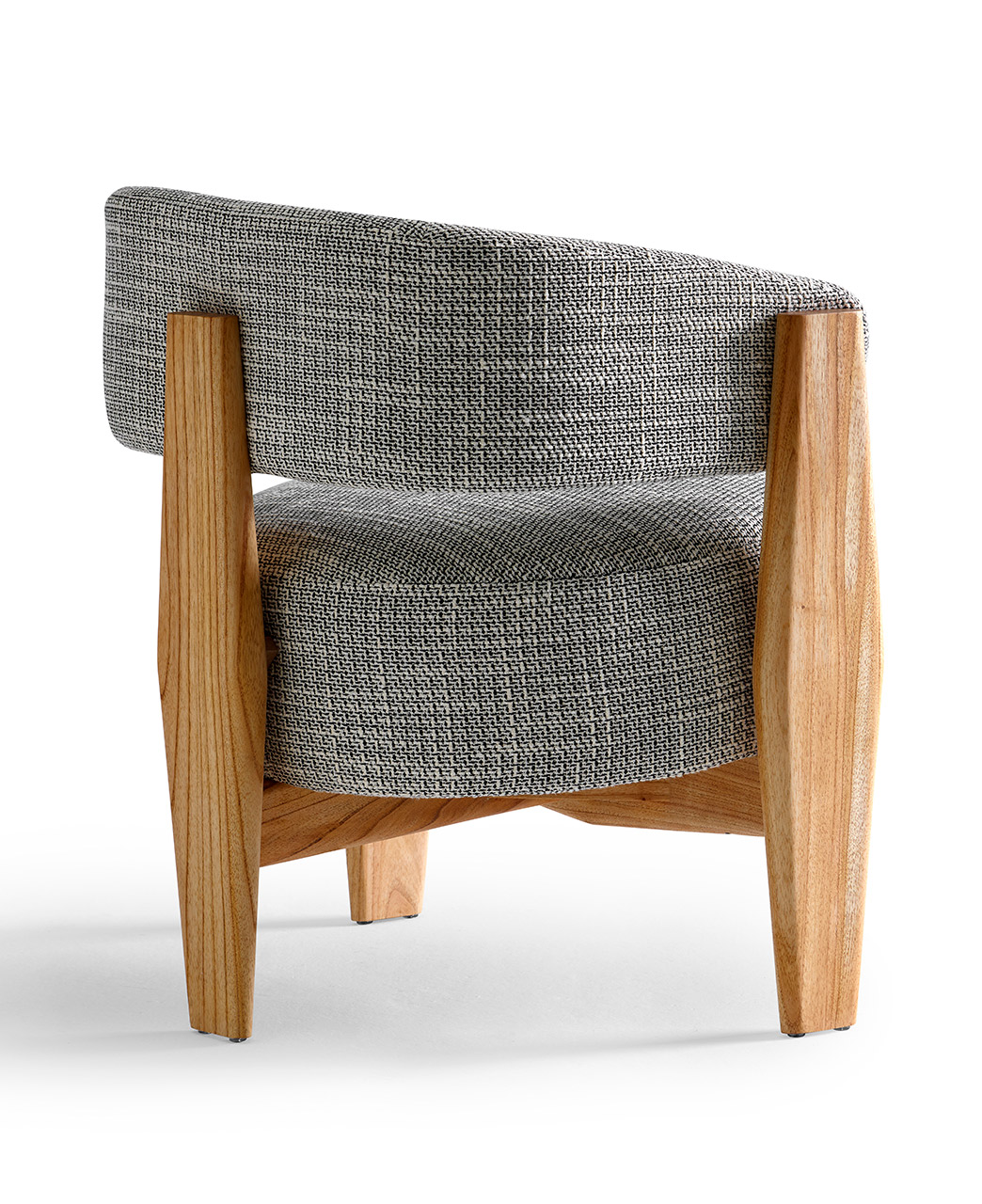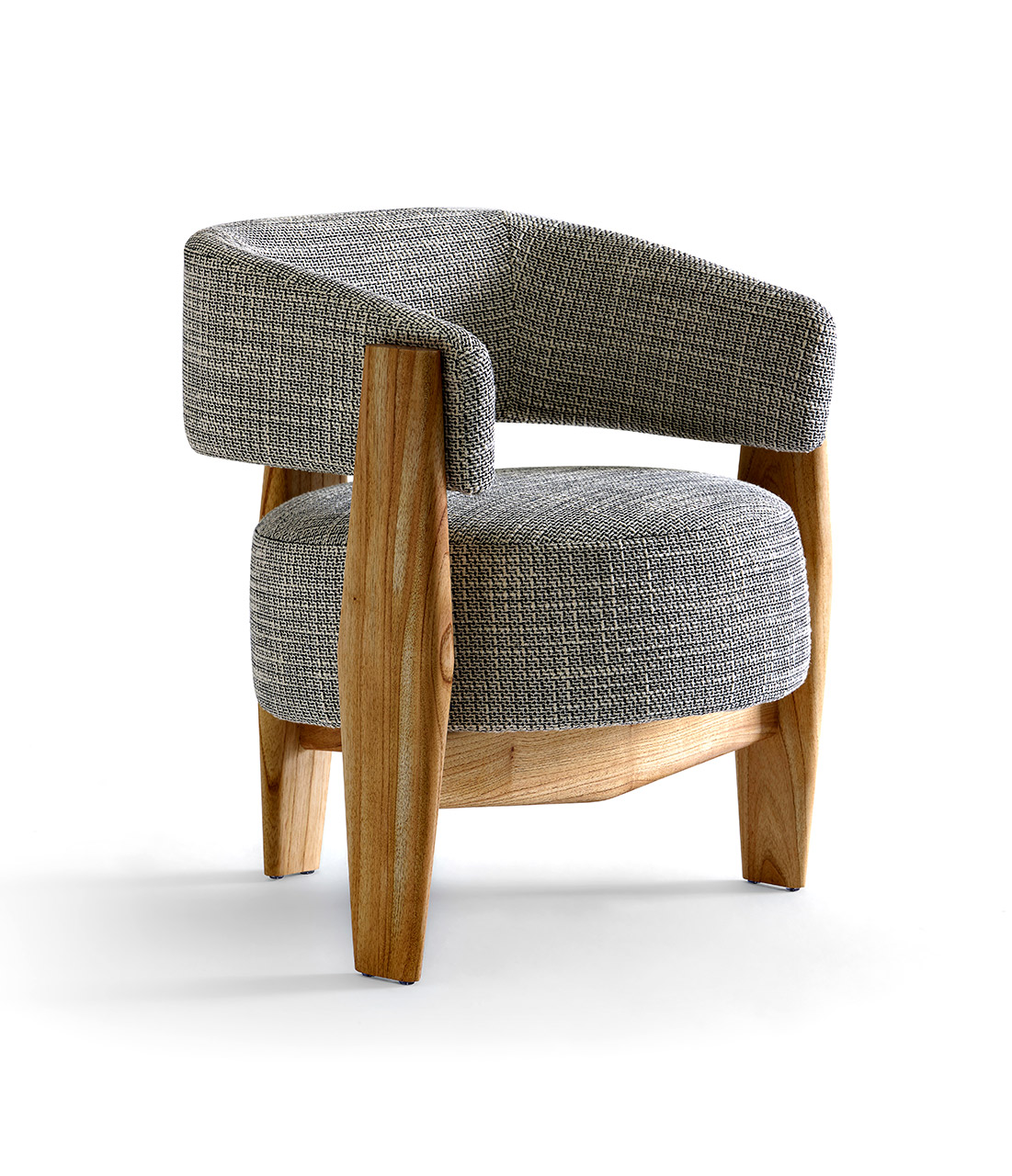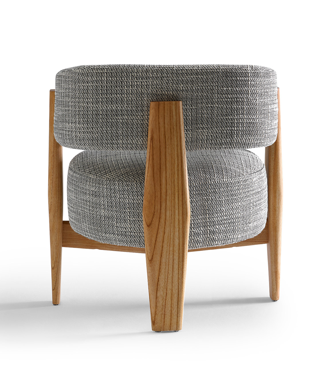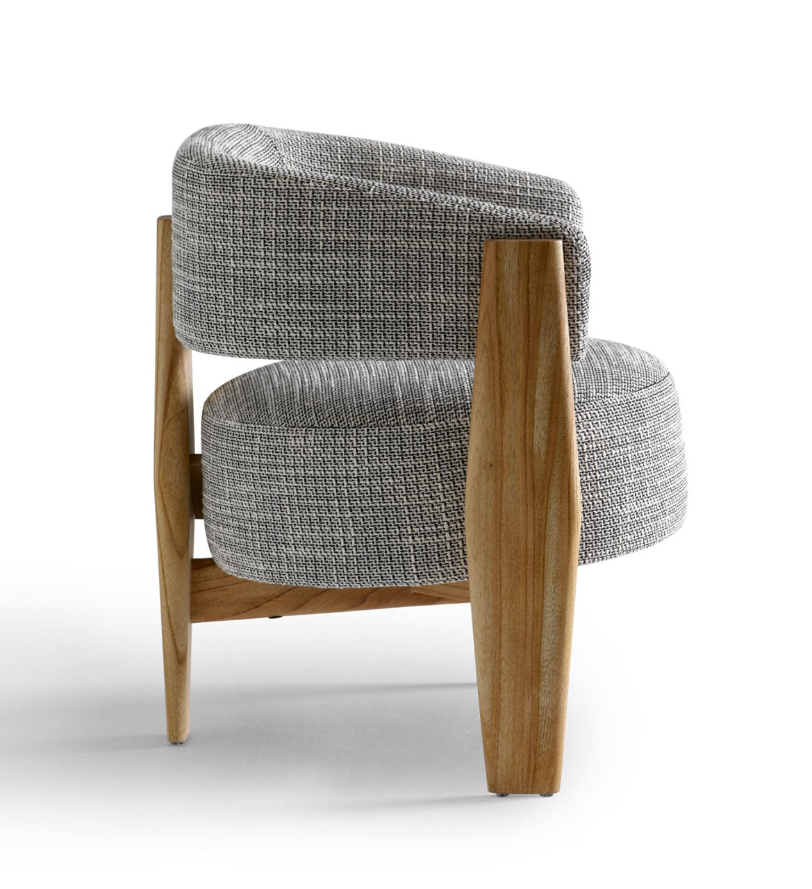 O assento em formato circular como uma pastilha dá um toque contemporâneo e permeia a escolha da forma circular como continuidade, resultando em um modelo leve, porém marcante. O braço em arco se estende até o encosto, unindo-se à estrutura de madeira de modo suave e evidenciando o arco como elemento de destaque do design. Aliado à estrutura de madeira maciça, o estofado no assento e braço trazem conforto e ergonomia à peça, além de diversas possibilidades de acabamentos e combinações. Sofisticada, a cadeira Arco incorpora a simplicidade da geometria com a presença estética contemporânea e atemporal, resultando em um modelo leve, porém marcante.