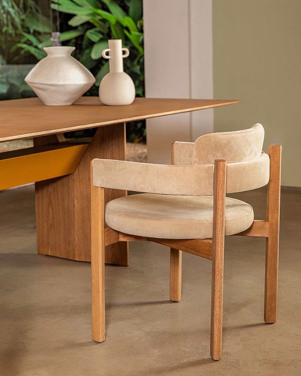 O arco, uma forma geométrica extraída da pureza do círculo, é a síntese da leveza e da fluidez. Ele é o ponto de partida da cadeira Arco, que carrega a geometria da linha curva como elemento estrutural vital, explorando a potencialidade dessa forma elegante e essencial.