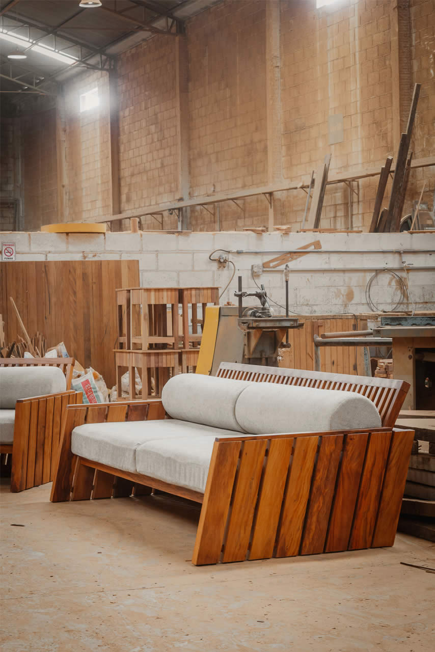 móvel rústico, trazendo um design limpo e sofisticado. Uma de suas características marcantes é o uso da madeira de demolição, destacando sua sustentabilidade e valor histórico. Cada peça de madeira carrega consigo um trabalho manual minucioso e a história de construções antigas, que são transformadas em um móvel único e com alma brasileira. Ao optar pela madeira de demolição, a INM Brasil contribui para a preservação do meio ambiente e promove a economia circular, fomentando produtos com propósito e que tem como essência a materialização da força do nosso design aliado a uma proposta ecologicamente responsável e conectada ao espírito mais consciente de nossa época.